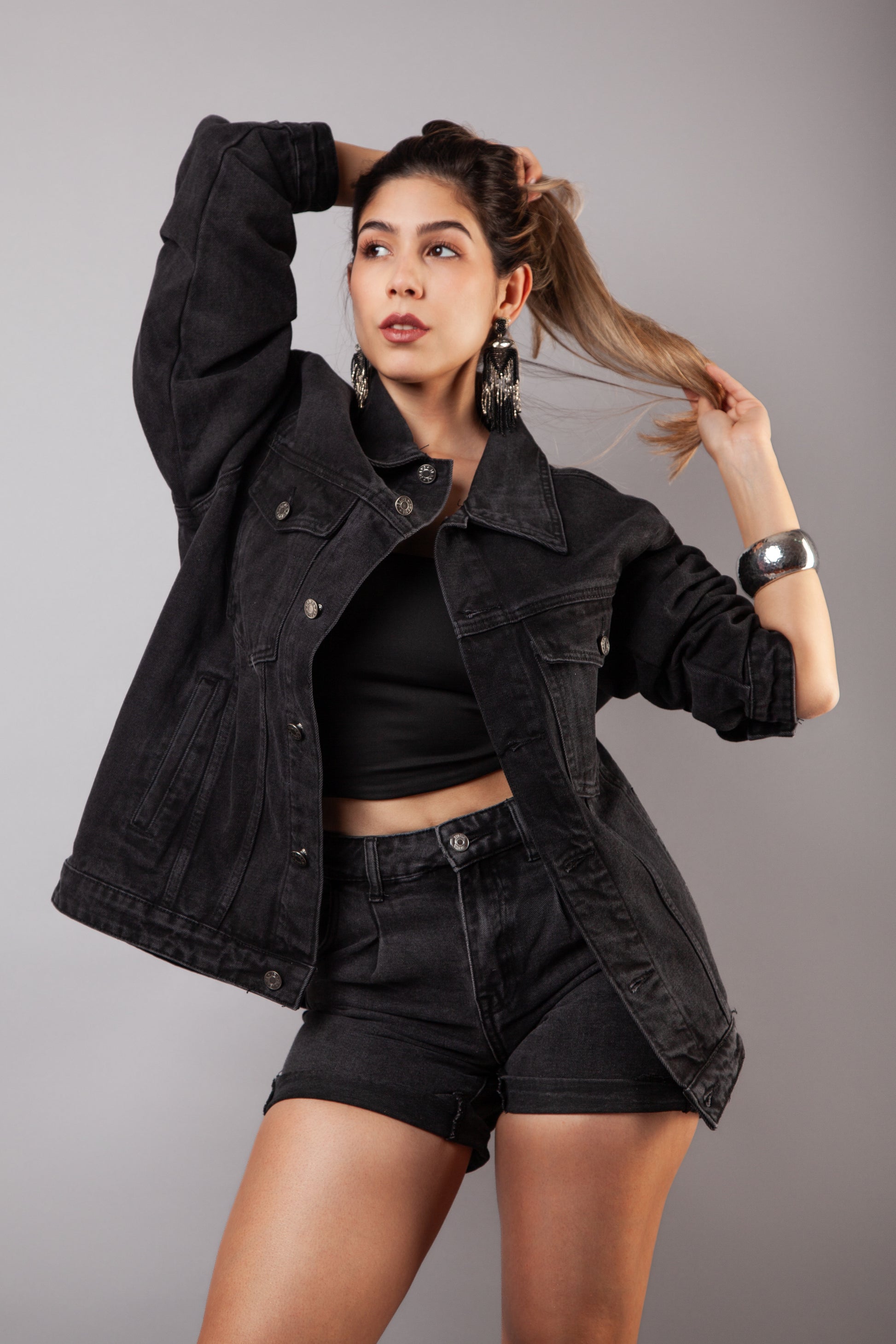 Chaqueta Tentación: la pieza que desafia lo ordinario. Confeccionada en mezclilla premium, suave y resistente, esta chaqueta oversize combina comodidad con actitud. Sus bordados exclusivos reflejan tu personalidad, mientras que los broches metálicos añaden un toque de sofisticación. Versátil y atrevida, transforma cualquier look—desde casual hasta audaz—en algo verdaderamente memorable. La prenda que necesitas para destacar.